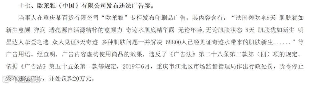 ⊙ 违法案例28-欧莱雅:虚假内容广告被罚
