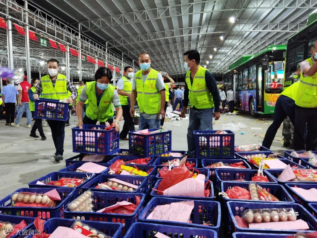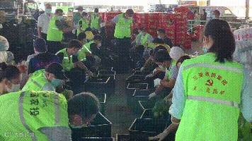 全体工作人员凝心聚力、团结一致,以严谨细致的工作态度和积极饱满的精神热情,全力以赴确保菜品分拣包装工作有序、高效地进行,保证“爱心包”按时按量、按计划送到封控区居民手中。