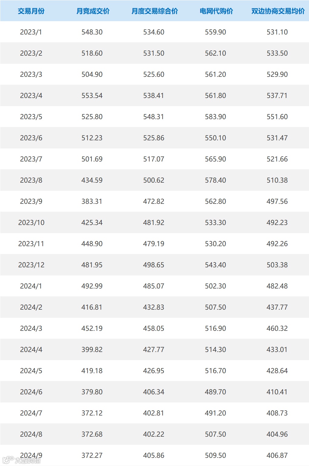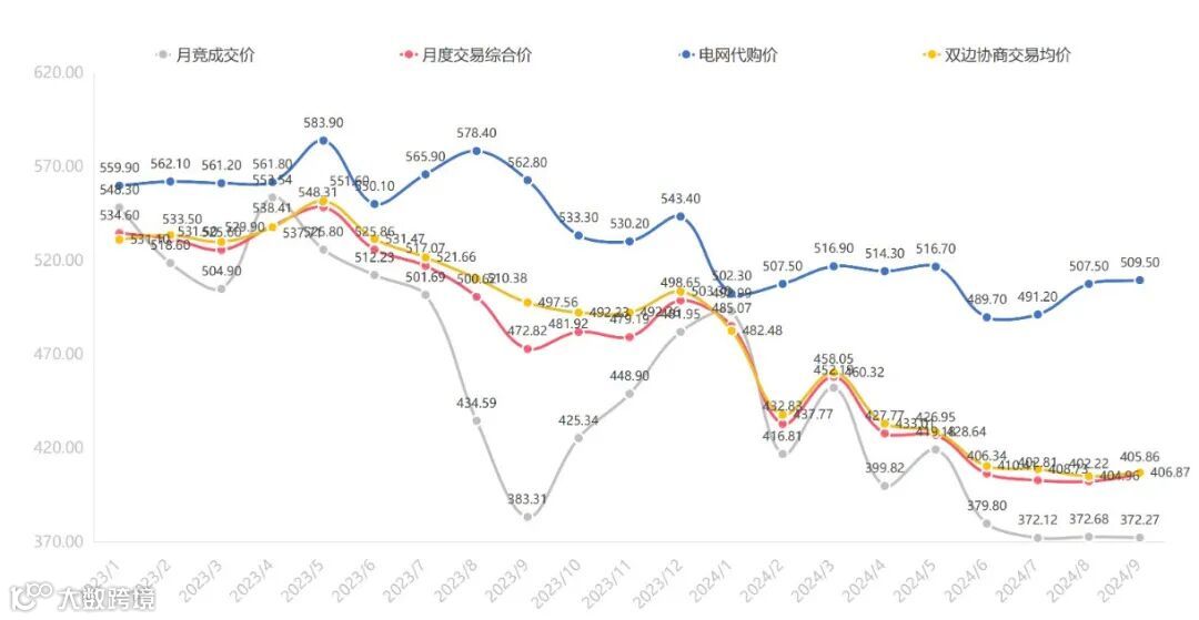 月竞成交价、月度交易综合价、电网代购价