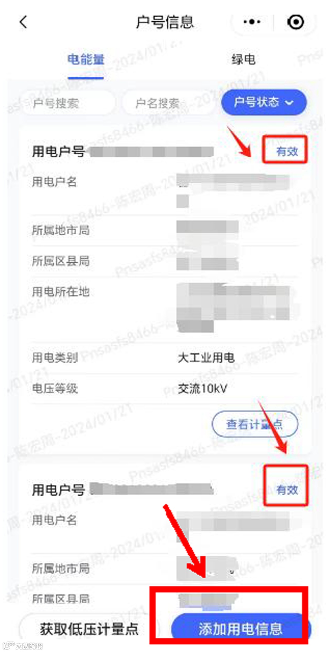 若无有效户号,可点击【添加用电信息】增加企业户号