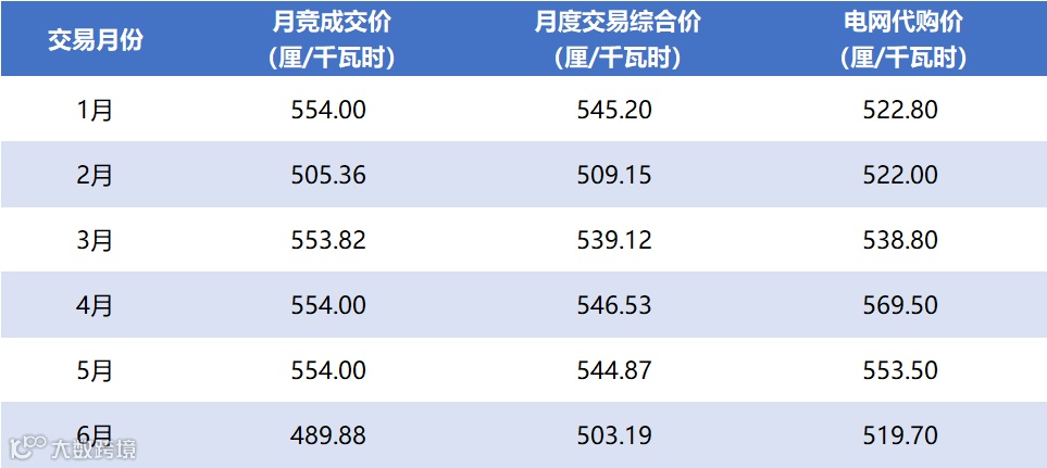 月竞成交价、月度交易综合价、电网代购价