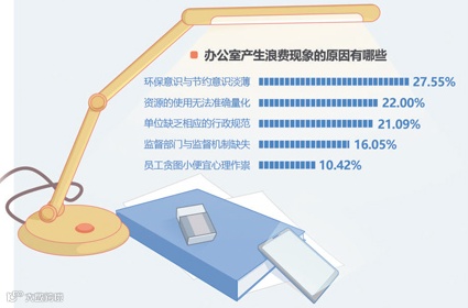 办公室浪费的背后,都有哪些原因?调查显示,节约和环保意识淡薄、资源使用无法准确量化、单位缺乏相应规范、监督管理不到位等都是具体原因。