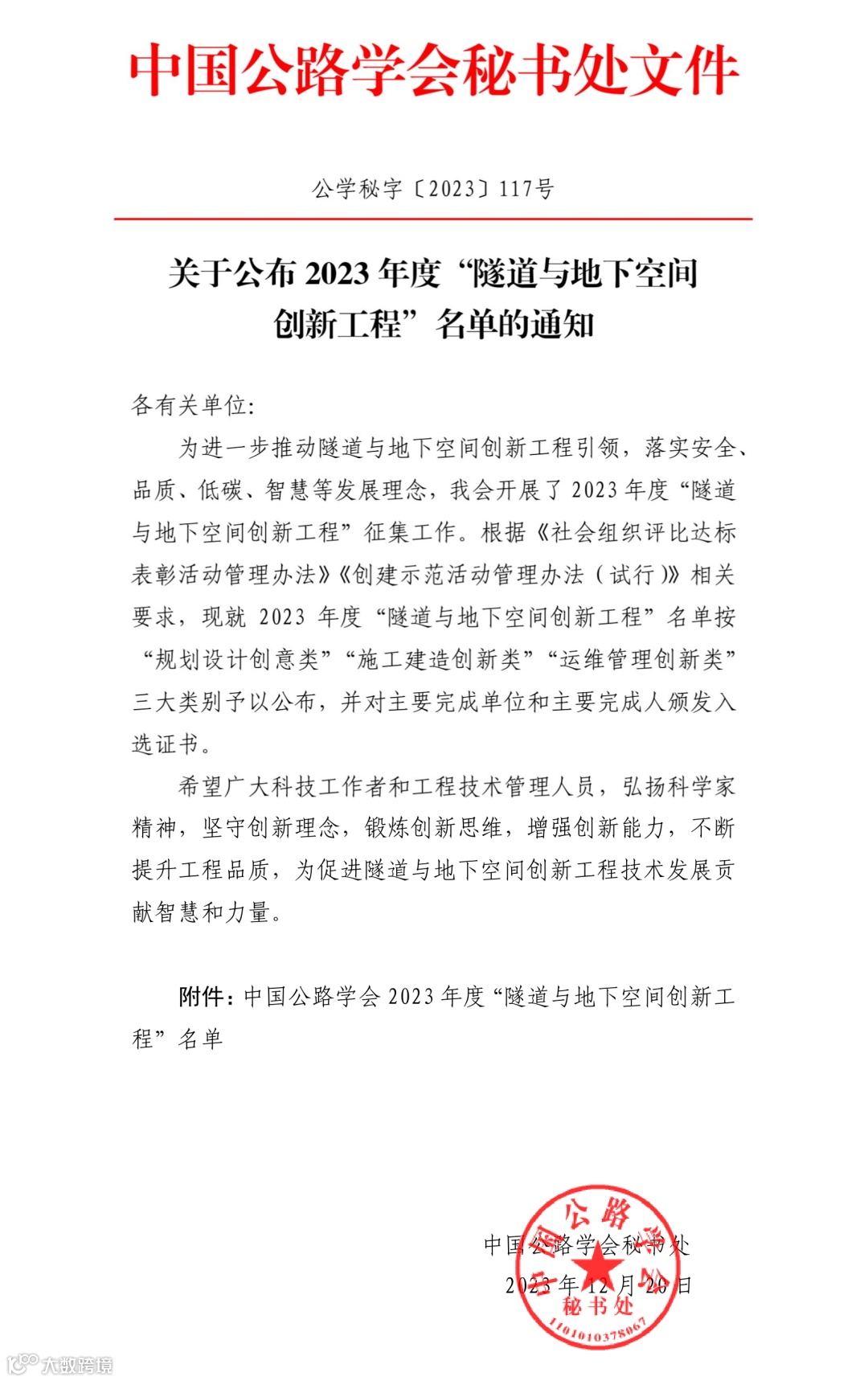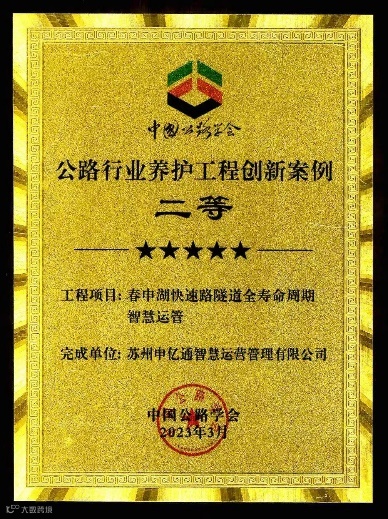 近日,中国公路学会公布了2023年度“隧道与地下空间创新工程”名单,申亿通公司在上级主管部门“苏州市相城区公路事业发展中心”的精心指导和支持下,此次申报的春申湖隧道运维项目成功摘得“运维管理创新类”奖项,而且这也是本次“运维管理创新类”唯一获奖单位。