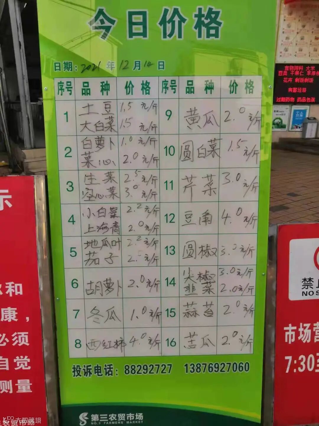 --“这个是公示栏,我在看公示栏上写着的今日菜价。”