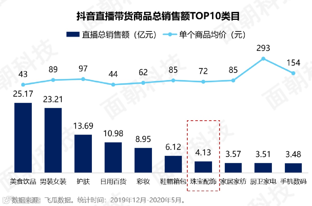 直播带货的风靡,让珠宝行业也发生了巨变,抖音、快手等平台纷纷在瑞丽、四会等珠宝原产地建立珠宝直播基地。像上文所说的抖音珠宝主播与源头货主直播砍价交易的方式,也成为了如今珠宝业的一条风景线。此前,面朝研究院发布的《40页干货!五大角度全面解析抖音、快手直播电商生态》发现,近6个月以来,抖音直播带货商品总销量珠宝配饰达到4.13亿元,这一小众类目有着不容小觑的实力。