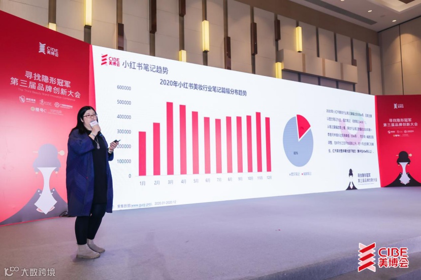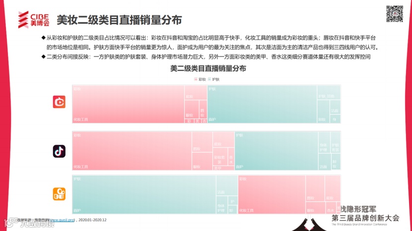 会上,神婆带来诸多新锐美妆品牌行业数据,报告从2020年度淘抖快新锐品直播数据表现、小红书美妆品牌笔记数据及粉丝画像、美妆品类数据分布解析、美妆新锐品牌市场推广分析总结与未来展望四个维度展开。