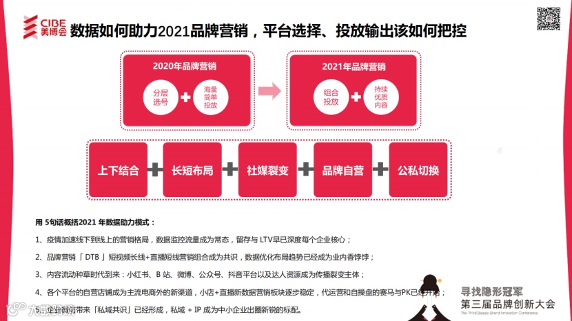 最后,神婆提到,2021年如何用数据助力品牌,可以用5句话概况: