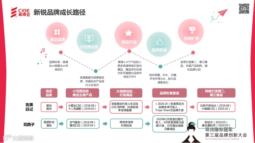 神婆表示,新锐品牌成长路径大致遵循选定品类、小范围投放、爆品打造、品牌塑造、持续扩张这几个步骤。而如何快速入局,成为下一个新锐明星,则可以从内容、用户、数据三个角度下手,关注新锐品牌崛起底层逻辑总结美妆品牌战斗核心实力、关注市场新生用户群体特质切割层次群体单线突破再扩张、互联网数据思维观察用户生产内容专业复盘市场运营效果,用数据助力增长。