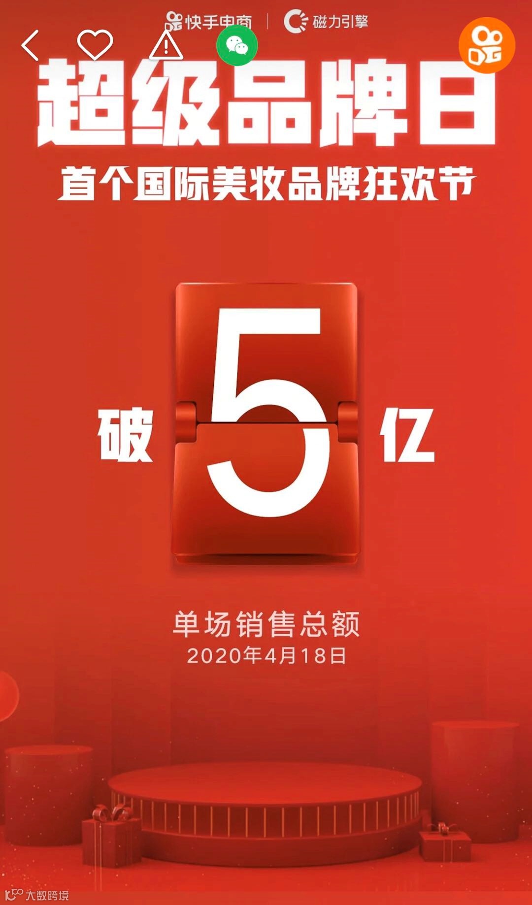 4月18日,辛巴徒弟时大漂亮以“快手品牌发现官”的身份现身快手超级品牌日直播带货,单日销售总额破5亿,销售额破亿用时53分钟。其中,售价4000元的La Prairie鱼子酱反重力精华秒罄,天气丹销售额达到5500万。据悉,从4月18日起,快手电商联合商业化正式面向全球公开招募食品、美妆、鞋服等领域的优质品牌和品牌服务商。