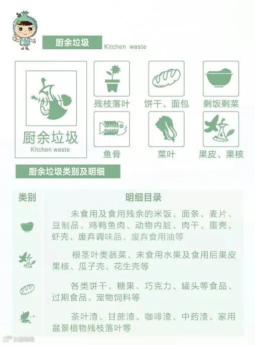 ●厨余垃圾水分多,易腐烂变质,散发臭气,既影响小区环境,也容易在垃圾收运过程中出现污水滴漏等问题,所以厨余垃圾投放时要沥干水分,有包装的厨余垃圾应将包装物去除后分类投放,包装物请投放到对应的可回收物或其他垃圾桶。