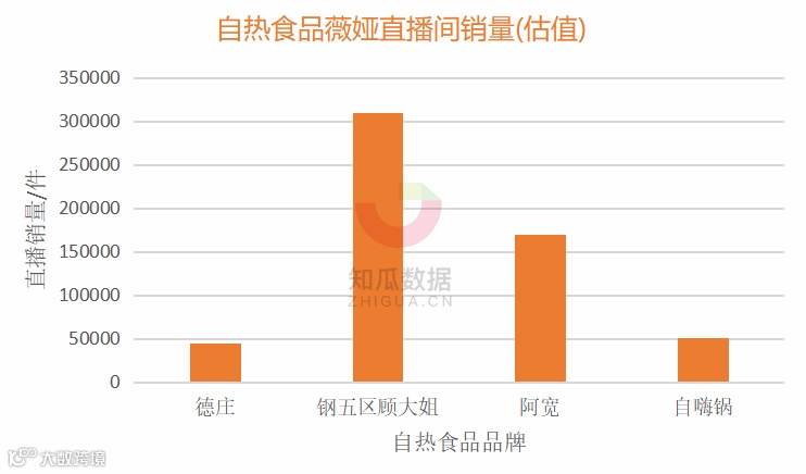 再看下薇娅直播间里近30天的自热食品的转化情况。30天有多个自热食品品牌上了薇娅直播间,我们选取了最为代表性的4个品牌进行销量对比。
