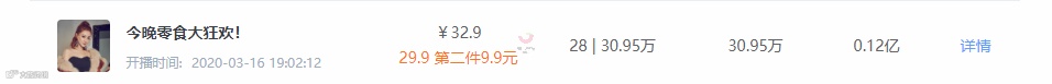 在品牌的关联播主分析中可以看到,近期自嗨锅投放的播主不止是薇娅这样的KOL,还有天猫超市、淘宝吃货官方账号这些拥有千万级粉丝量的直播号。