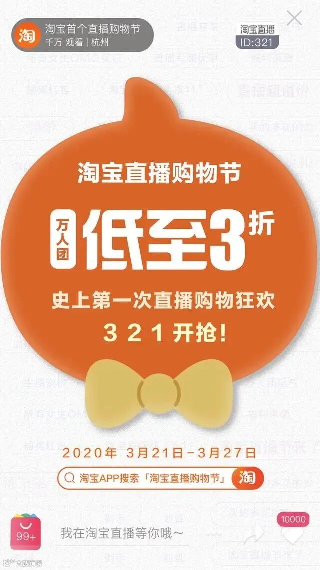 3月21日,淘宝直播开启史上首个“直播购物节”,超1万个线下门店将集体开播。借助“直播万人团”等创新方式,消费者可享受到低至三折的福利。此次淘宝购物节旨在创造消费新风向,淘宝直播将串联全行业生态,集中全域曝光资源,打造线上购物超级大促。
