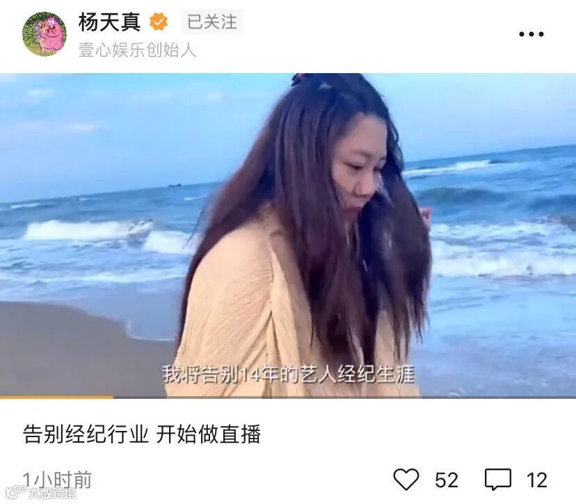 杨天真将入局直播行业,卸任所有艺人经纪业务