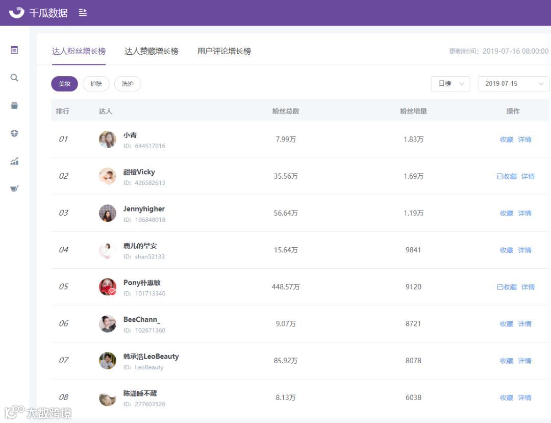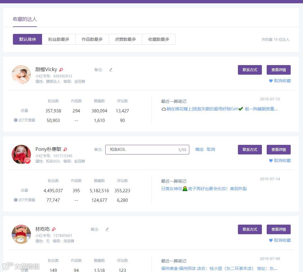 达人收藏,数据跟踪