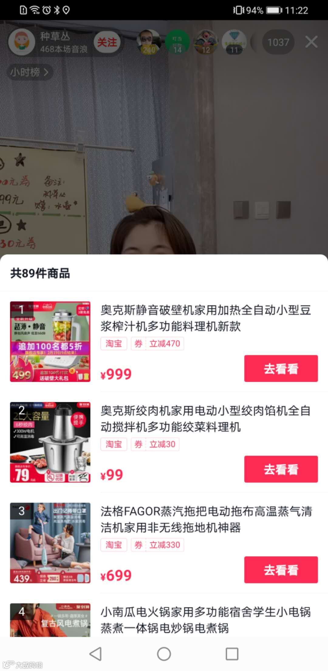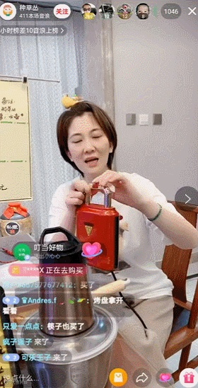 我们点开「种草丛」的直播间,可以看到前面提到销量增量第一是“破壁机”正是该场直播的主推商品。