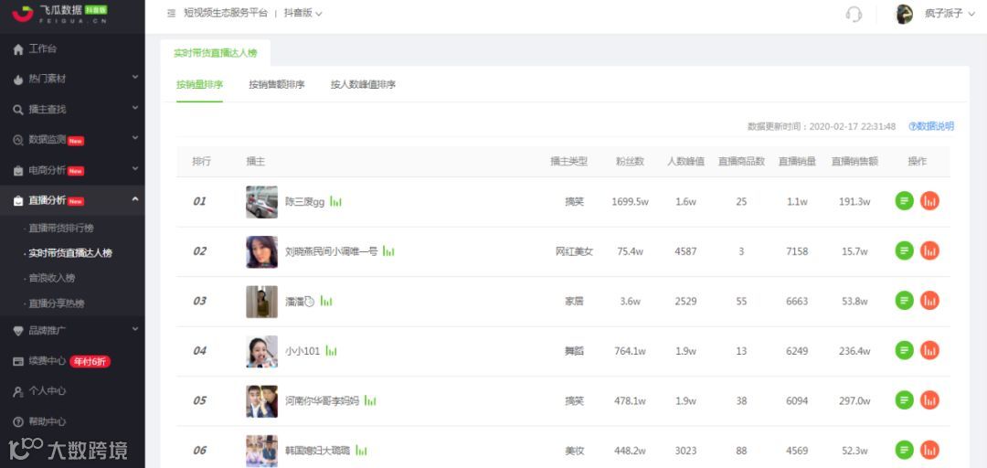 △图片来自:飞瓜数据 - 实时带货直播达人榜