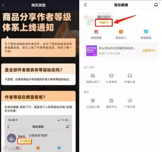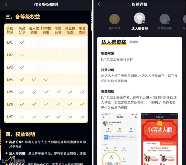 而前几天,抖音又进一步上线了带货号的作者等级项目,将带货号分为V1-V7,7个等级,等级越高,享用权益越多。