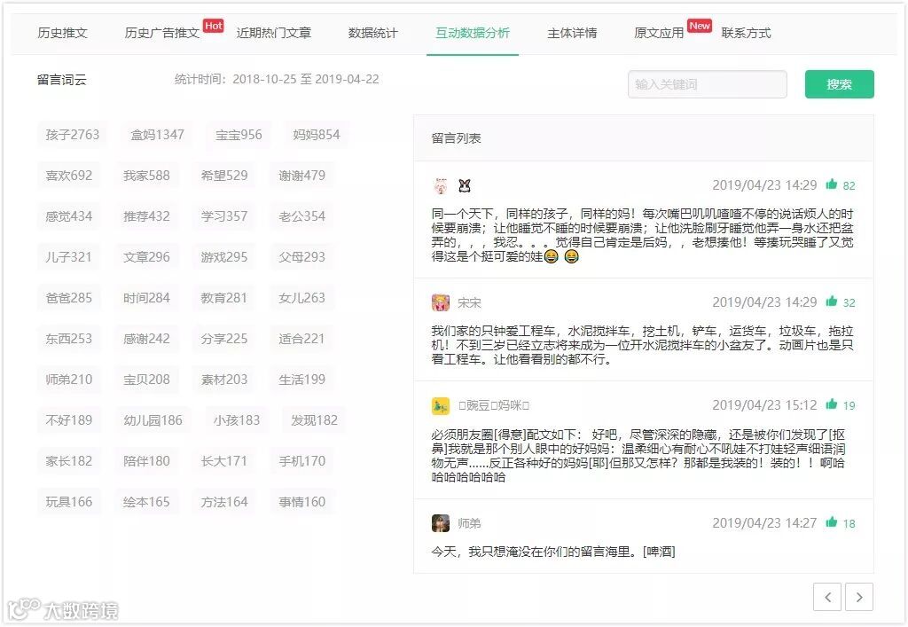 “盒妈来了”上周发文 23 篇,揽获阅读 37w+ 。作为K12教育的公众号,从互动数据分析中可以看到,粉丝们所关注的点集中在孩子身上。