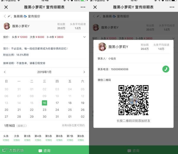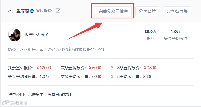 可以填写公众号每条推文的平均阅读量和对应报价,还可以设置联系电话和二维码,方便客户随时联系到你。