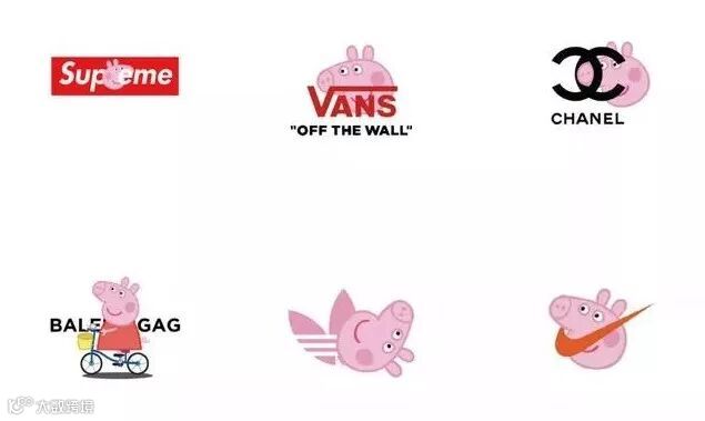 网友们脑洞大开,设计了众多大牌与小猪佩奇的联名款LOGO,虽然是恶搞,但毫无违和感。