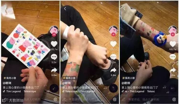 抖音的大热小猪佩奇自然不能缺席,在短片中网友满身的小猪佩奇元素,竞相追逐看谁更“社会”?关于小猪佩奇的挑战活动,更是引发了全民狂欢的热潮。