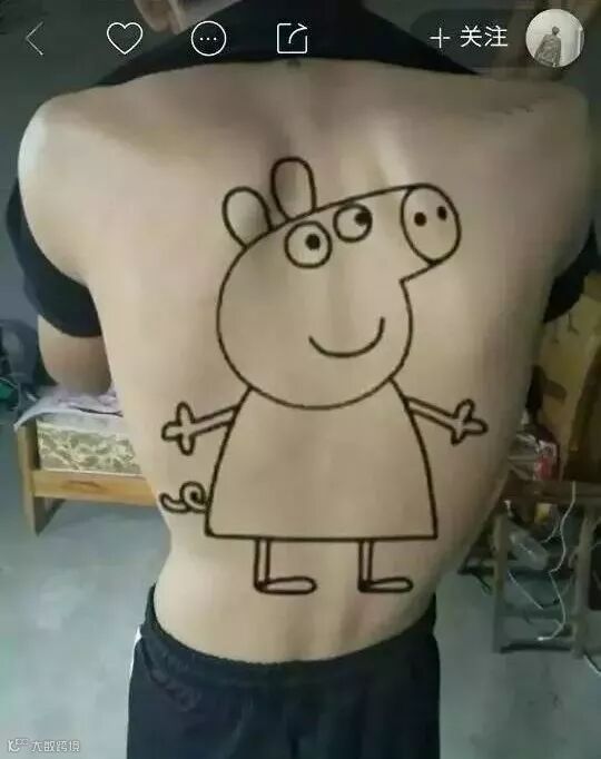 出人意料的是,将小猪佩奇纹上身受到了众多追捧与效仿,小猪佩奇一时间成为了“社会人”的身份牌。