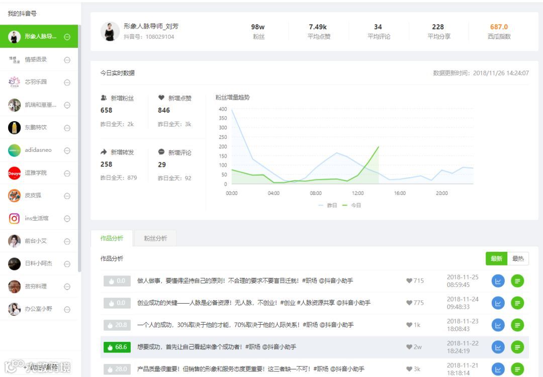 想尽办法提升点赞量,评论量,转发量,完播率,这4个维度的数据。西瓜短视频助手推出“我的抖音号”实时数据报表,让用户可以一目了然看到点赞量、评论量和转发量,再结合自己抖音后台的完播率,可以快速调整内容运营的方向和方式。