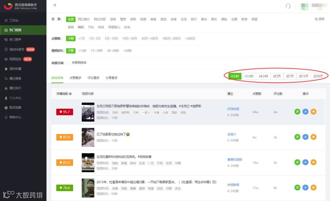 对于无法实现原创的播主,可以考虑一些海外资源instagram、youku等平台视频内容,这样可以保障内容的质量,又可以快速实现内容复刻,再结合西瓜短视频助手的“热门视频”功能,了解24小时,甚至6小时的爆款特色,帮助你对视频进行二次创作。