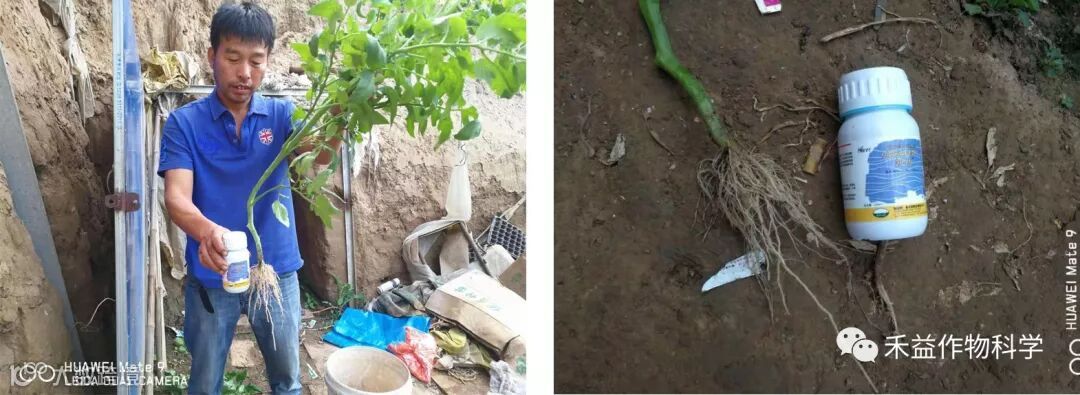 寿光田柳野虎村刘大哥,冲施凯功1L/亩,一周后效果,根系粗壮、叶片浓绿、叶片厚。