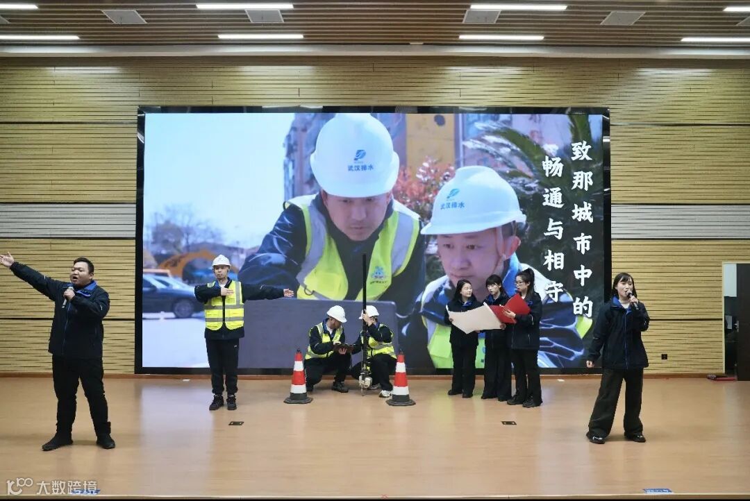 文艺展演环节,节目深度融合行业特色与一线情怀:情景讲述《太子湖20年》致敬一代代排水人二十年如一日的默默坚守;合唱《奔跑》以激昂节奏唱出攻坚克难的奋斗姿态;青年职工化身跃动水滴,用舞蹈《弗洛格之舞》灵动演绎水生态和谐之美;三句半《以管为弦,奏响城市畅行乐章》以质朴方言讲述管网巡检的日常故事,引发全场深切共鸣。