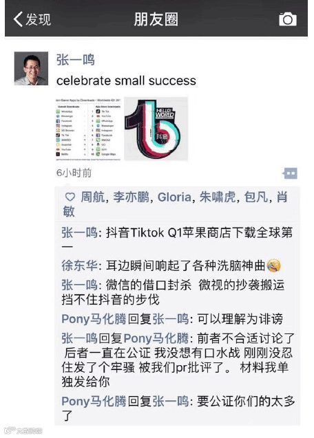 如火如荼的发展态势确实值得庆贺,没想到的是张一鸣的评论直接引发马化腾隔空“互怼”,最后直接上了热搜。只能说,聚焦于短视频的竞争已经越加白热化,围绕短视频的pk只会日益加剧。