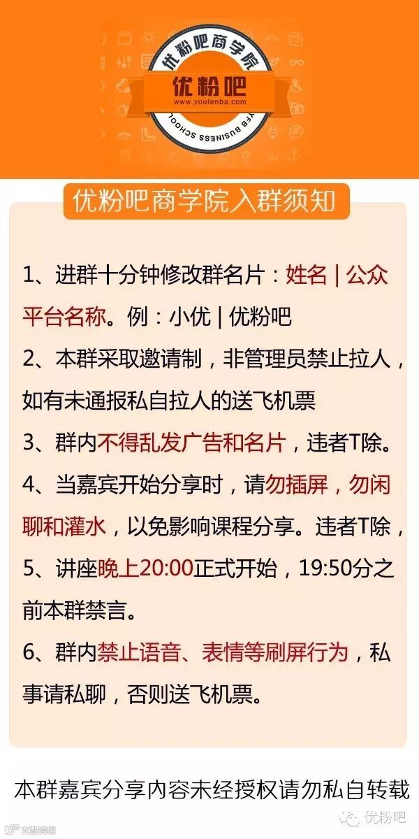 3.优粉吧直播群邀请时间,讲座当天下午17:00。