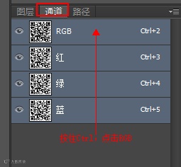 ❷ 点击图层旁边的通道,按住ctrl(command)单击图层RGB: