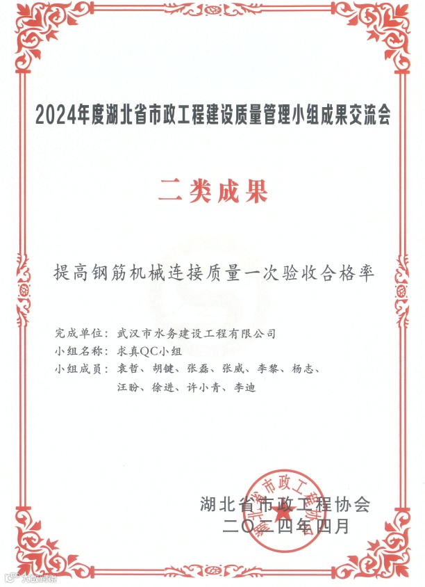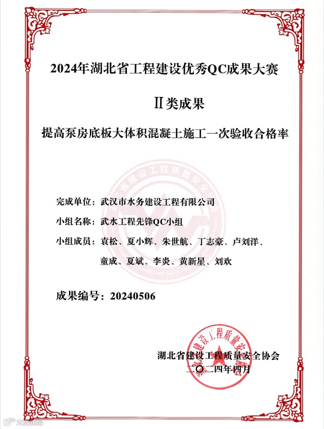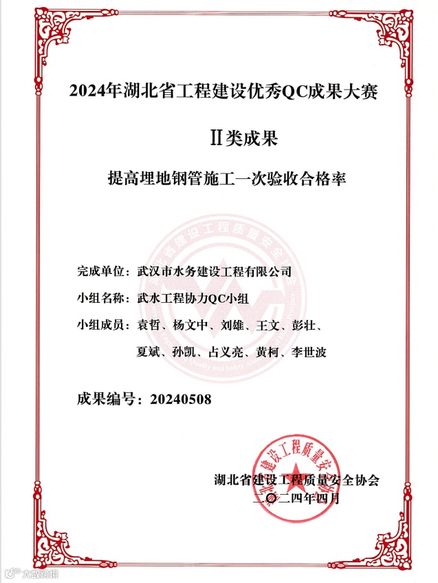 2024年5月,湖北省建设工程质量安全协会和湖北省市政工程协会传来喜讯,武汉控股工程公司报送的QC成果在激烈的角逐中脱颖而出,6项QC课题荣获Ⅱ类成果。