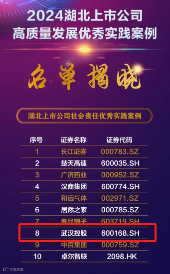 2024年9月24日,“2024新质生产力赋能高质量发展思享会暨《湖北上市公司发展报告(2024)》发布会”在武汉成功举办。会上,武汉控股公司荣获“湖北上市公司社会责任实践案例”奖项,彰显了企业以“绿”为底、向“新”而行的社会担当。