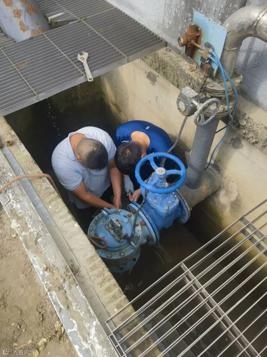 在高温和供水高峰的双重考验下,汉江之滨的白鹤嘴水厂员工们增加了巡检频次,细致检查了机电设备、水泵、阀门确保供水设施状态良好、运行稳定。当发现沉淀池部分排泥阀处水流异常时,他们立即开展维修作业,并决定逐一维护疏通所有排泥阀。尽管阀门管道在太阳直射下温度极高,维修环境湿热难耐,但他们依然一丝不苟,认真检查每一处排泥阀管道直至全部完成疏通。