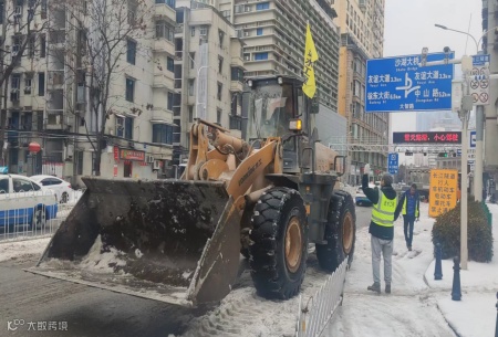 期间,因该段市政道路积雪面积较大,地面冰雪被压实,已无法进行人工作业。了解情况后,武汉控股公司迅速调集武汉市水务建设工程有限公司(以下简称“工程公司”)联同参与清理工作。工程公司积极响应、迅速出击,紧急组织应急抢险人员50人,应急装备包括铲车4辆、撒布机3台、融雪剂5吨赶赴现场。