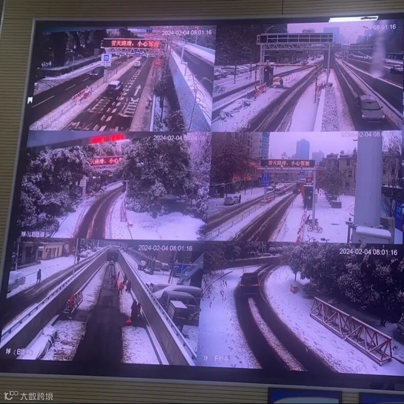 在监控中心可以看到,虽下雪不断,但长江隧道匝道口路面几乎没有积雪,停放在一旁的登高车会不定时清理隧道口顶部的冰柱,防止坠落。监控中心的电话铃声也不时响起,传来巡检人员现场巡检、测温的消息。