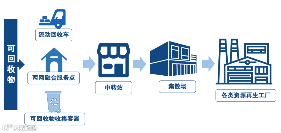 四是可回收物,也就是废纸张、废塑料、废玻璃制品、废金属、废织物等适宜回收、可循环利用的生活废弃物;它们会被送去资源化利用企业进行资源化利用。