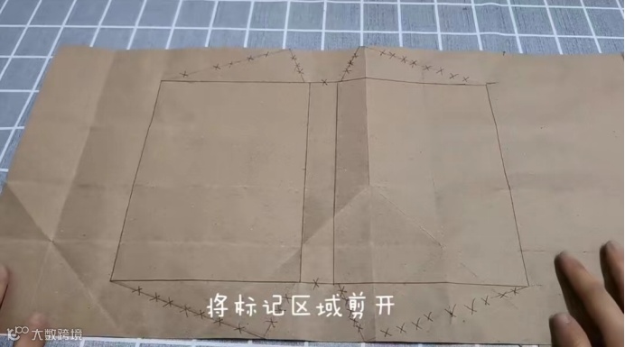 找到大致轮廓,画出折痕,并将标记区域剪开