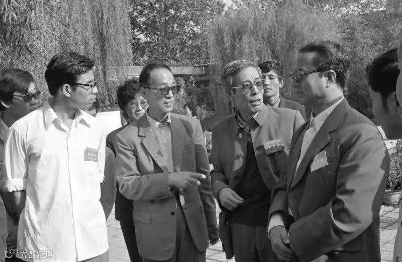 1985年10月10日,全国城市环境保护工作会议在河南省洛阳市召开。图为时任国务院环境保护委员会办公室主任、国家环保局局长曲格平(左二)及其他同志在会议期间一起商谈维护城市生态平衡,美化绿化城市环境的问题。