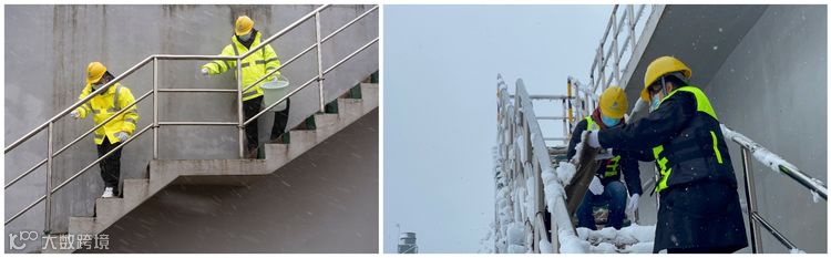 开工第一天,排水公司出动应急人员120多人、使用融雪剂157公斤、敷设防滑草甸1250只、铺设防滑垫300米,铲除道路结冰,确保厂区主干道畅通无阻,生产平稳运行。
