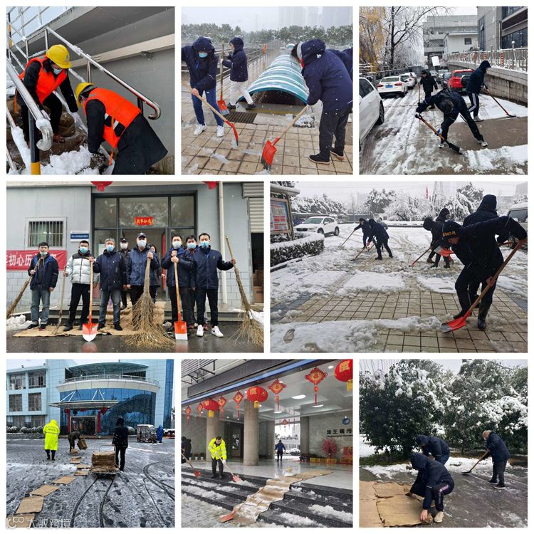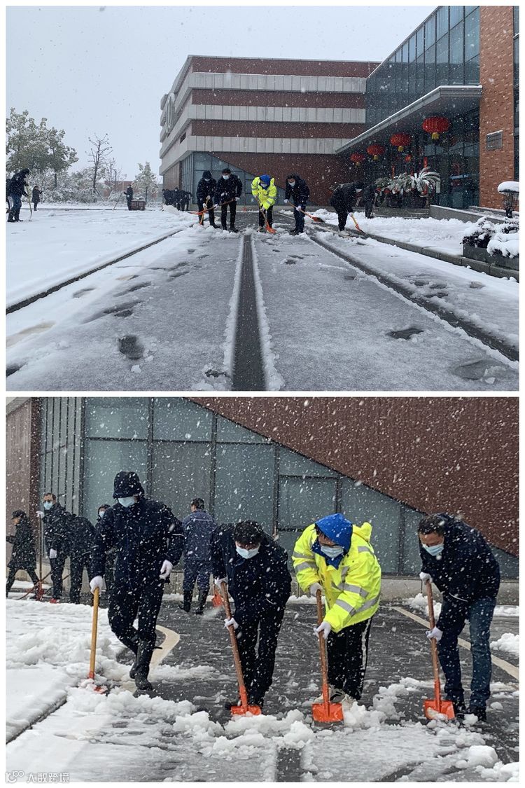 风雪中,每条道路上都是忙着除雪的职工和电瓶车,大家不畏严寒、相互配合,经过数个小时的奋战,各单位的重要场地、主要道路的积雪被清除,为安全生产和职工出行扫除了障碍。