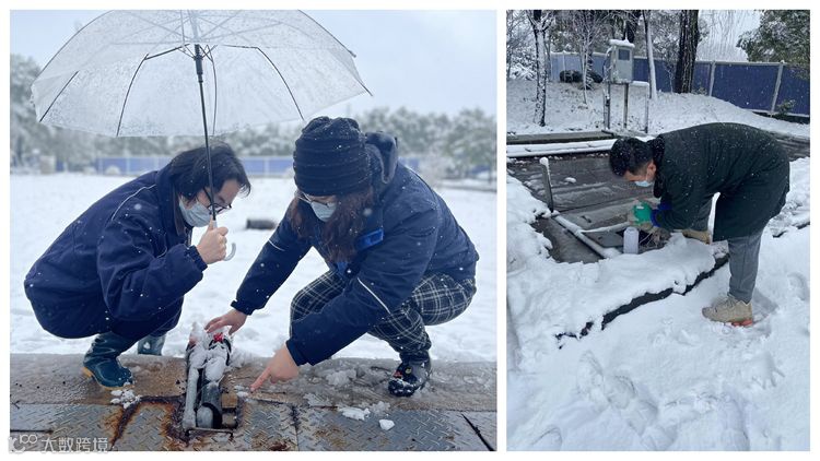 排水公司加强水质检测频率,工作人员冒着风雪检查设备防冻情况、采集出水水样,严把低温雨雪天气水质安全关。