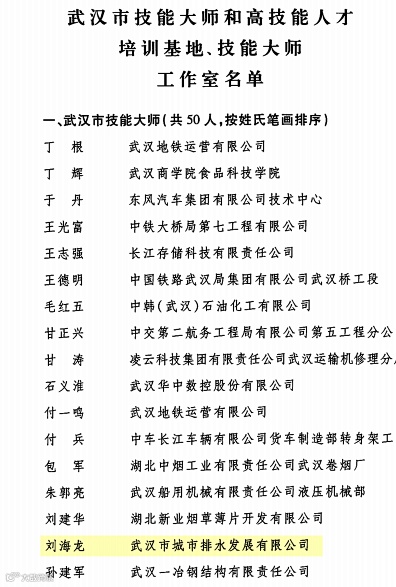 被武汉市政府评为武汉市技能大师