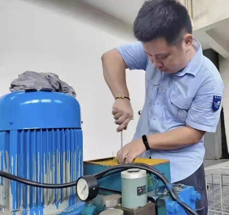 曾磊正在更换电机液压站行程开关