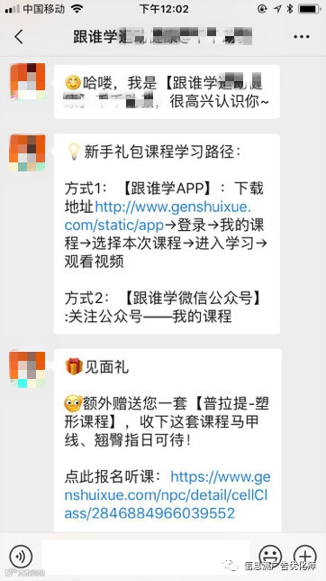 与此同时,收到短信push,引导添加辅导员微信,就算你不看短信,你也要看课的,进入新手礼包课程详情页,引导添加辅导员微信,拉你进班级群。