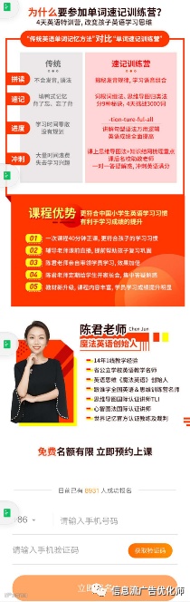 页面的设计逻辑:名师打头-->目标人群痛点-->详解课程特色-->打消用户顾虑-->马上下单有优惠。