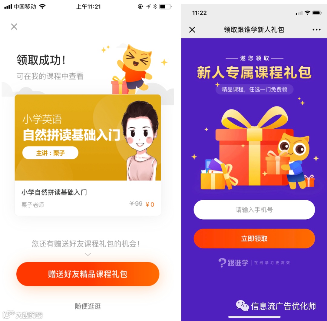 成功领取后,页面引导把课程分享给朋友,实现新拉新。